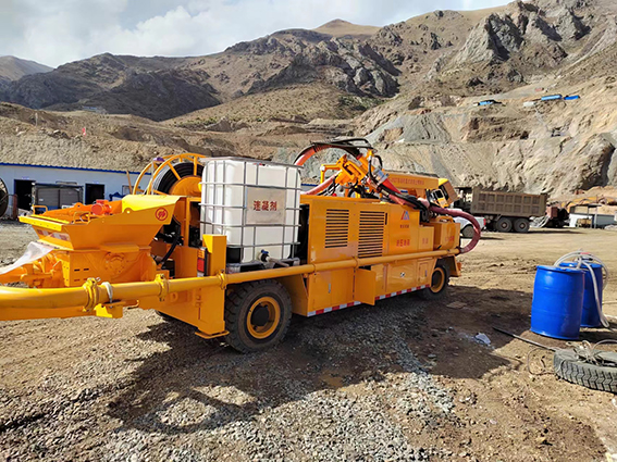 礦用柴油機(jī)濕式混凝土噴射車(chē)施工現(xiàn)場(chǎng):
